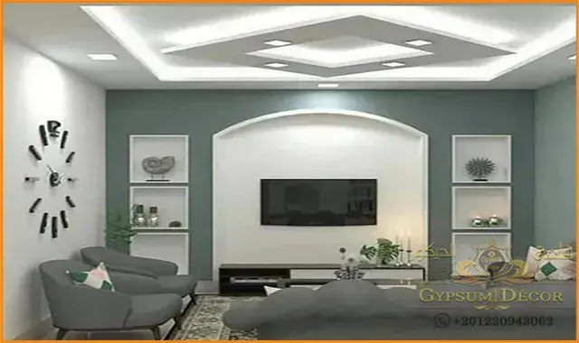 من بين ديكورات اسقف الجبس، ما يسمى الاسقف المستعارة المستطيلة او المربعة او الدائرية، وهذا النوم مصمم حول سقف النجف يقع وهناك أيضا نوع يستخدم في التصاميم في زوايا الغرف.