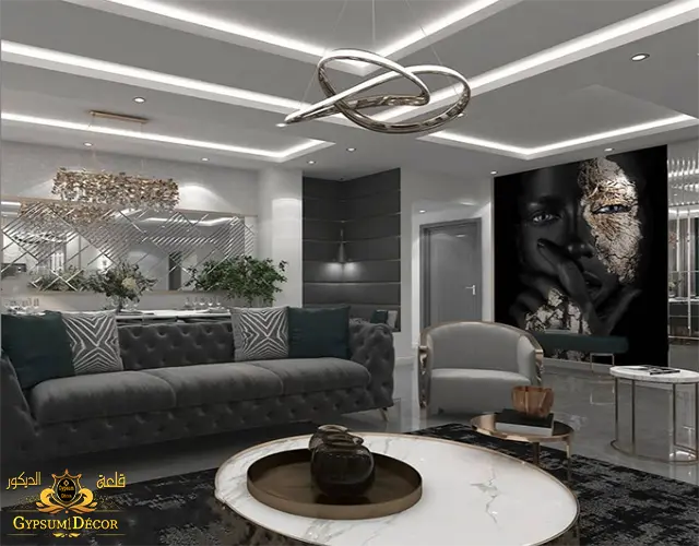 وهو الأكبر حجماً ويتميز ديكورات الجبس، في الحقيقة أننا نستطيع تركيب وحدات إضاءة خفية داخل السقف، والتي يمكن للمصمم توزيعها بطريقة جيدة بحيث يتم الاعتماد عليها كإضاءة.