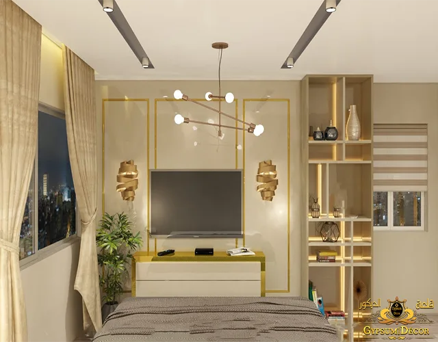 - يوجد به اضاءة مخفية داخل الجبس او ما يسمي بالبلانكة في السقف نفسه ويتيح اماكن الآضاءة على حسب الشكل.