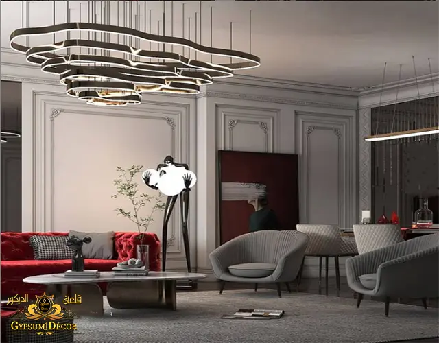 ميزة أخرى لتصميمات الأسقف المعلقة الحديثة وأنظمة إضاءة الأسقف والزخارف الجبس وأضواء السقف LED هي أنها حلول زخرفية، لديك الكثير من الحرية.