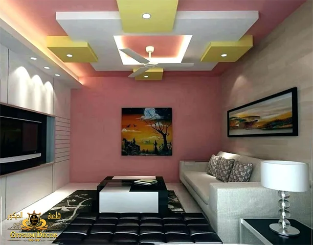 من أجل جعل تصميم السقف بارزًا ، وإذا كان ارتفاع الغرفة يسمح بتثبيت تصميمات ديكورات للسقف، مع هذا النوع من تصميم السقف ، يمكنك تغيير هندسة مساحة الغرفة بشكل كبير، وتغيير الانطباع البصري والرؤية للداخل.