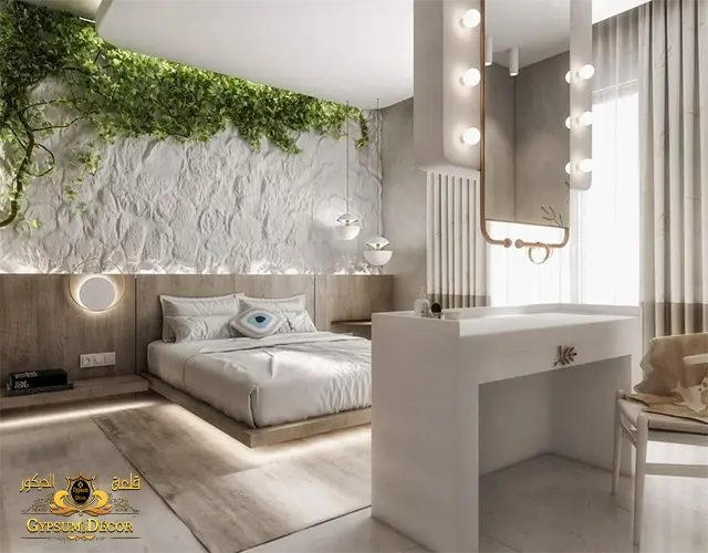 سيؤدي استخدام الصالات وسقف غرفة النوم، إلى تغيير المساحة إذا كان السقف خفيفًا ستحصل على تأثير قوى وجذاب ويعتمد ايضا على الوان الحائط والجدران والستائر والأثاث داخل الغرفة.
