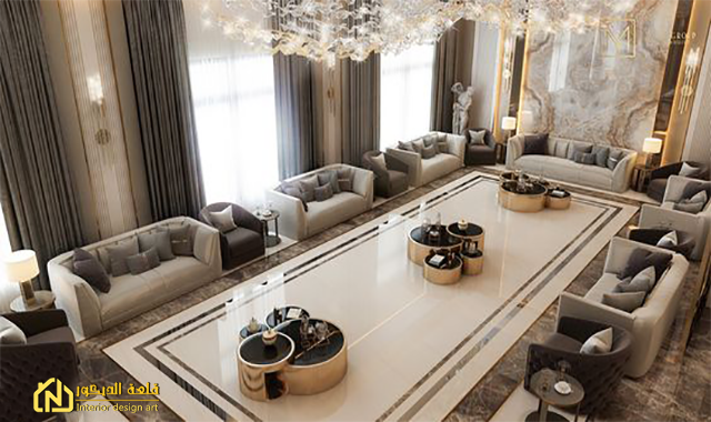 المواد والخامات: يجب استخدام المواد الطبيعية مثل الخشب والجلد والحجر في تصميم المجالس العربية، حيث تضفي هذه المواد الدفء والطبيعية والتراث على التصميم، ومن الجيد اضافة ديكور بديل الرخام مع القليل من بديل الخشب أيضا.