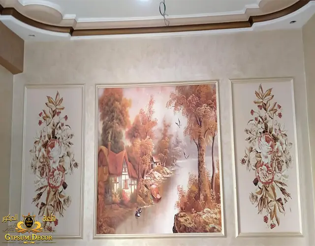 يقدم موقع شركة دهانات الجزيرة وألوان روعه يمكنك عمل حائط من البيج الباستيل والألوان يولد الجو الدافئ بواسطة اطار خشبي مذهب.