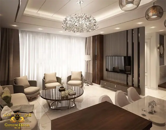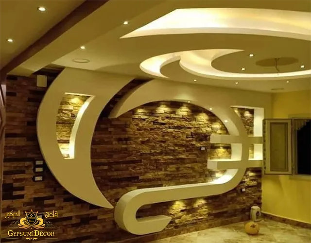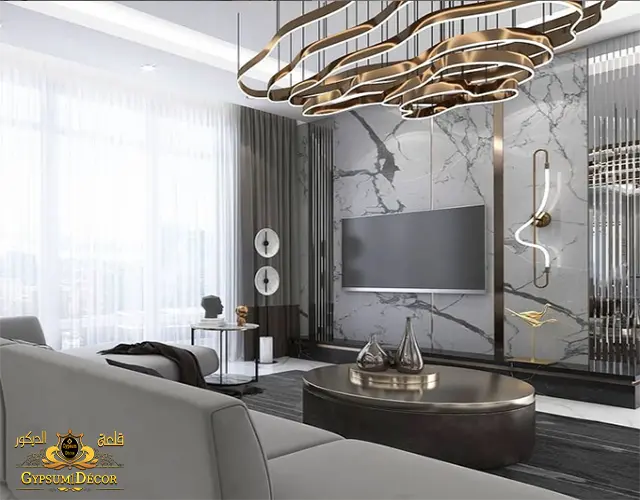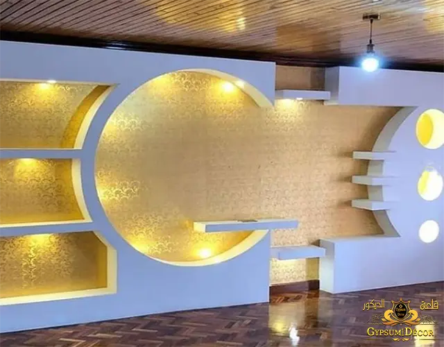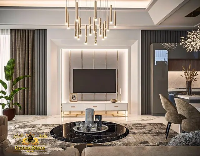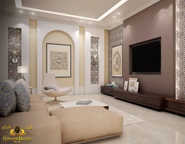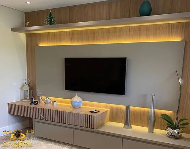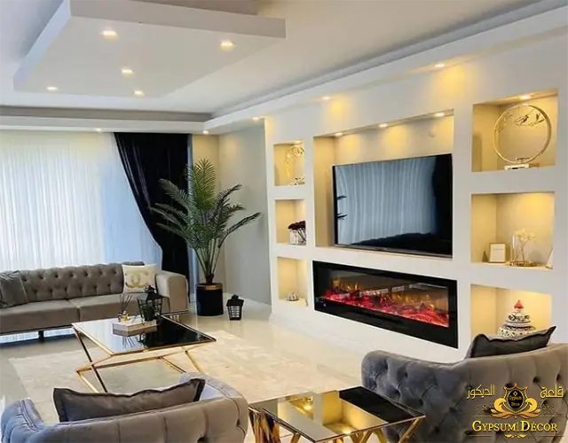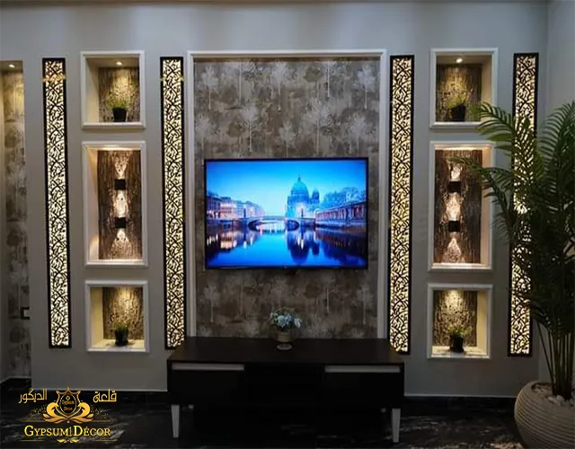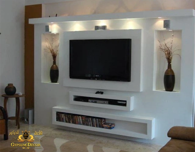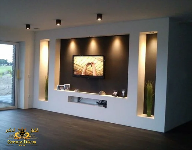 لإعطائها مناظر تدل علي الحداثة والعصرية، وتوجد أفكار متعددة منها وضع شاشة التليفزيون بالمنتصف، مع ابراز ديكورات الجبس لكي تعطي للذي يشاهد المنظر بأنها تكون داخل الجدار.
