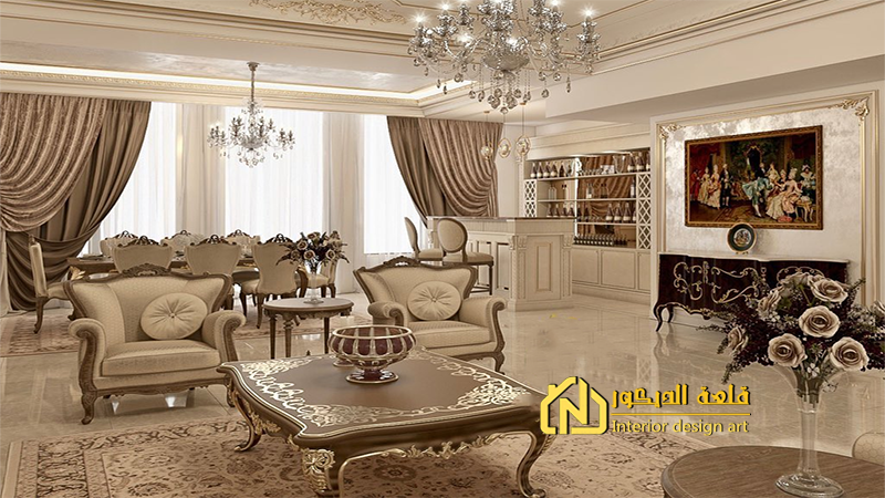 مثلا أن وجود شكل هندسي أحمر أو أصفر مثل الكتب، شمعدانات بلا قوائم قطع أثاث فرنسية قديمة، كل هذا يساهم في أبراز اللمسات اللونية التي تناسب الغرف في المنزل.