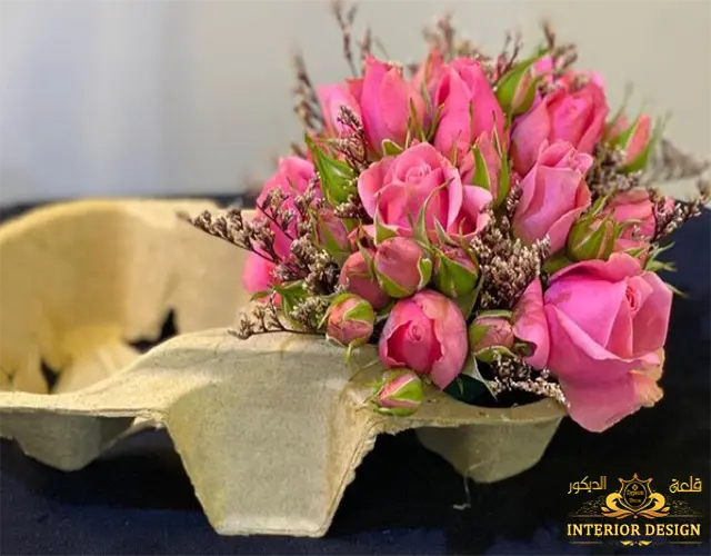 على الاكتفاء وضع ربطة من وردة القرنفل داخل الاناء، ولكن يستحسن تشكيل ورد