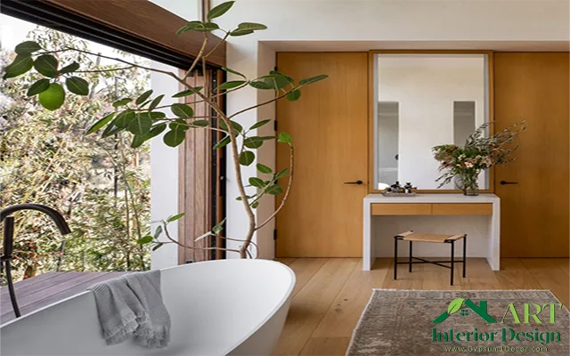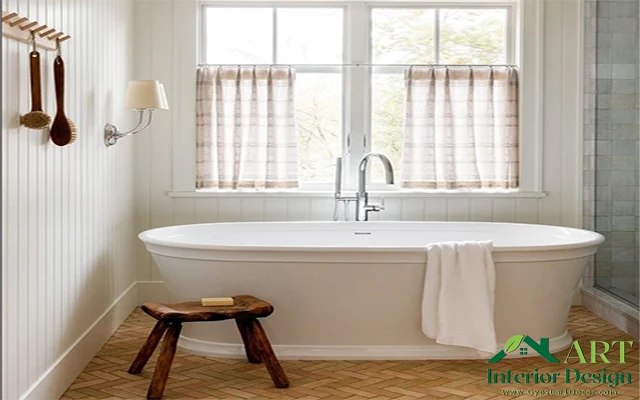 وتوفير أكبر قدر من المساحة لوضع البانيو بمقابل جهة النافذة ن مع وضع القليل
