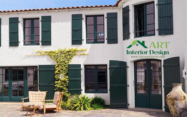 أحادية اللون، مثل الأبيض مع إضافة بعض المساحات الخضراء والخشب الطبيعي والخوص