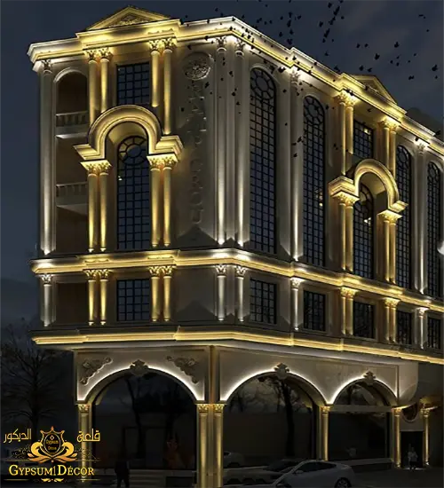 ويوجد منها قوالب الجي ار بي التي يعتمد عليها الأن، في جميع تشطيبات الوجهات الخارجية، كما يظهر في الصورة امامك لتكون قوية جدا، حتي لاتؤثر من العوامل الجوية مثل الشتاء ودرجات الحرارة المرتفعة.