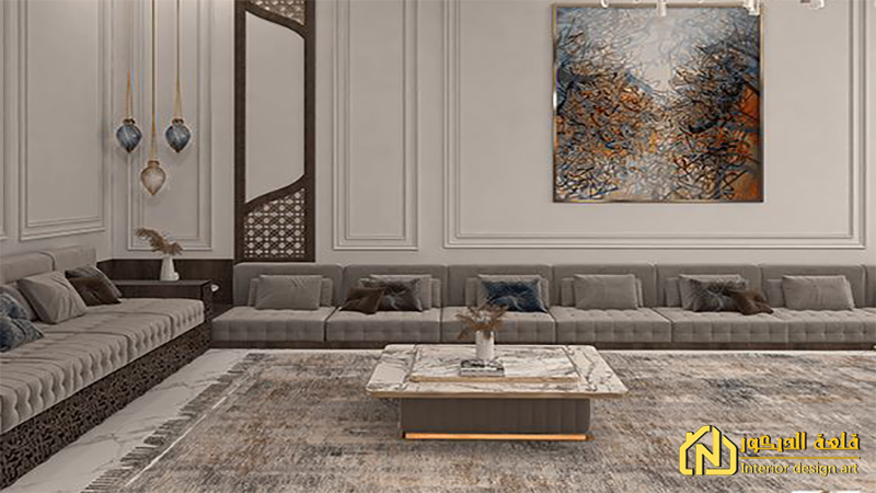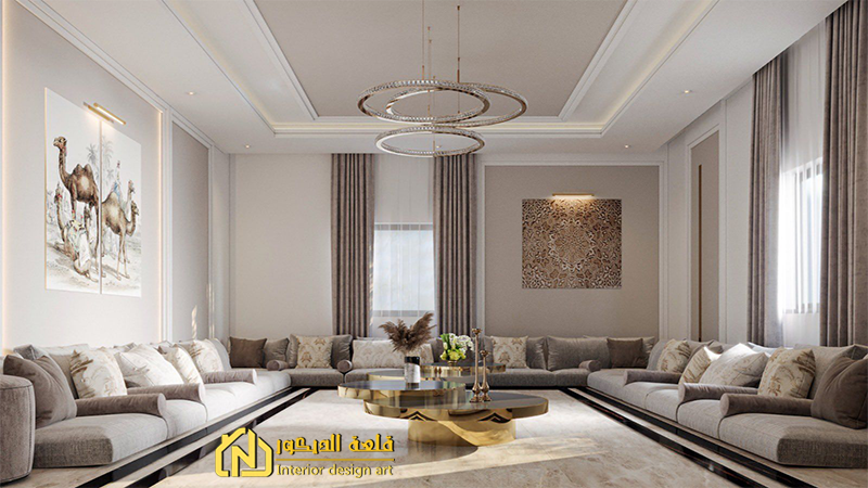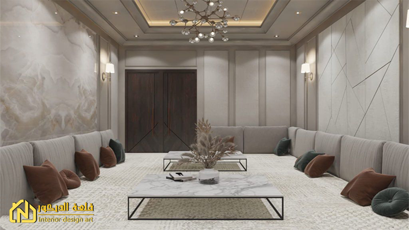 التي تعكس الأصالة العربية والتراث السعودي، حيث تزخر المجالس الفخمة بالأثاث الراقي والمصمم بعناية فائقة، وتتميز بتصميماتها الفريدة والمميزة التي تجمع بين الأناقة والتراث العريق، كما تتميز بالألوان الهادئة التي تضفي عليها الهدوء والراحة.