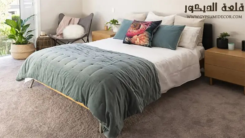 ثانياً: يجب اختيار اللون الذي يناسب ديكور غرفة النوم وألوان الجدران والأثاث، إذا كانت غرفتك ضيقة يجب اختيار موكيت بلون فاتح لأنه يجعل الغرفة تبدو أكبر.