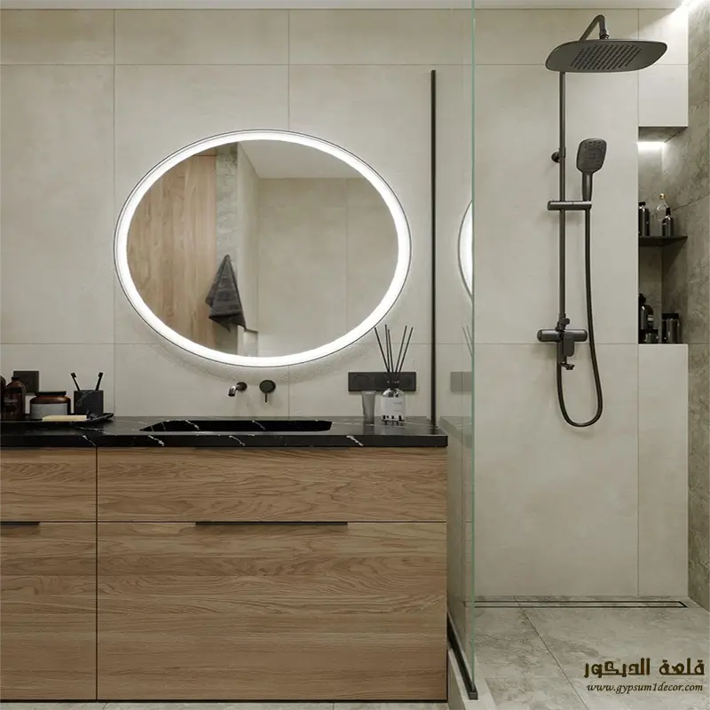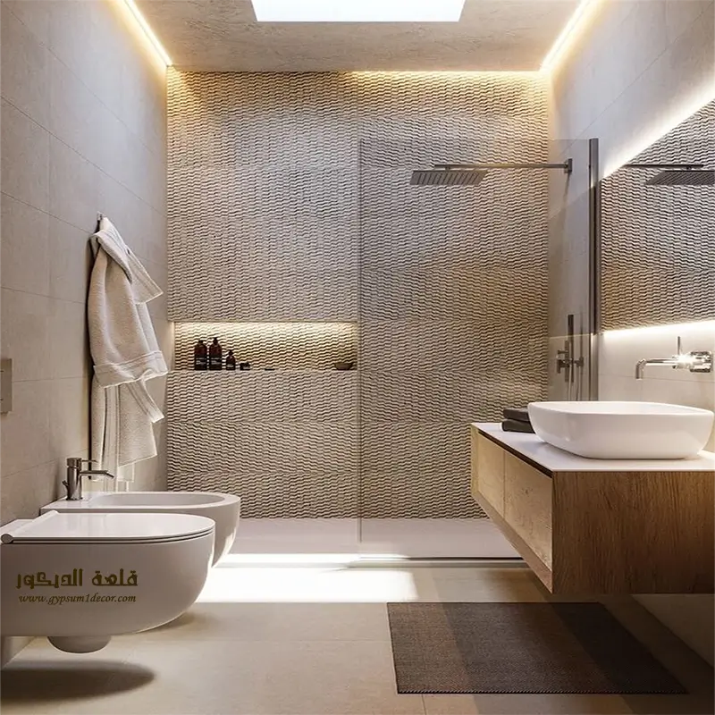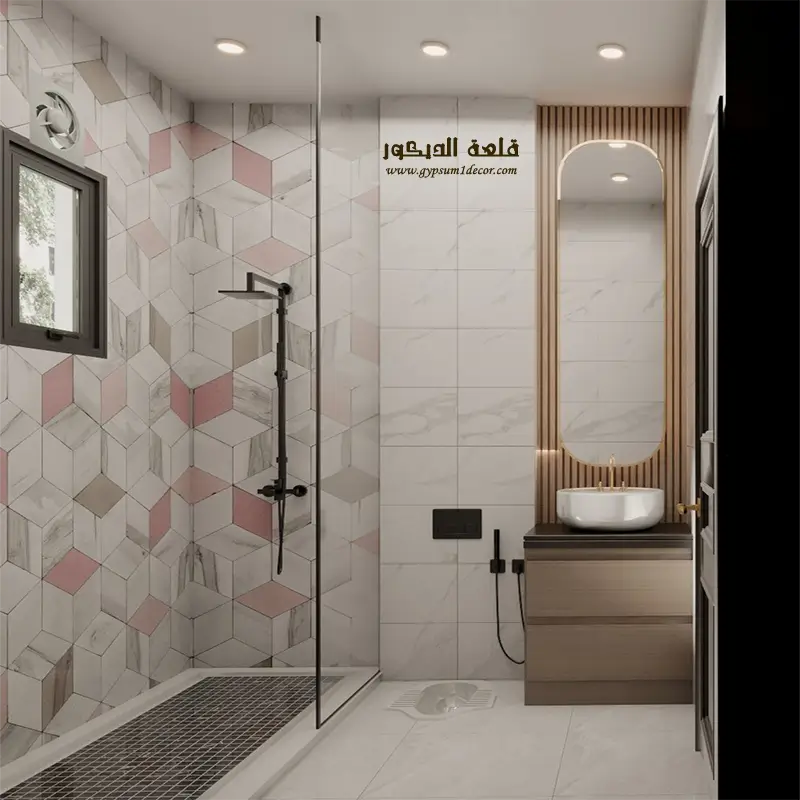 بدون اهمال اي جزء من ادوات الحمامات من خلال مصممين محترفين، نقدم كافة خدمات التصميم الداخلي والخارجي وأعمال السيراميك فهو عنصر ضروري في ارضيات وجدران الحمامات Modern small bathroom design.