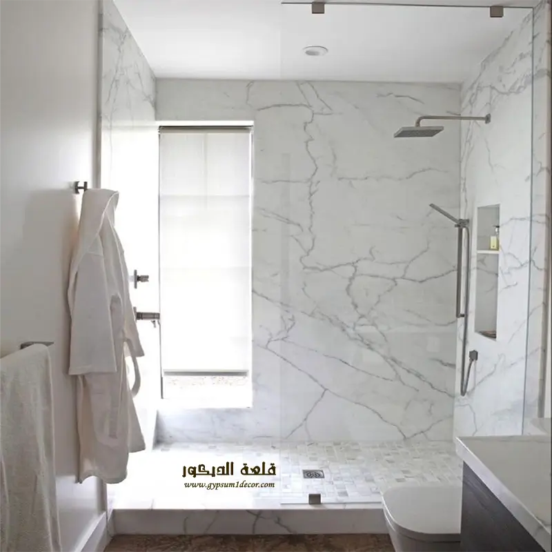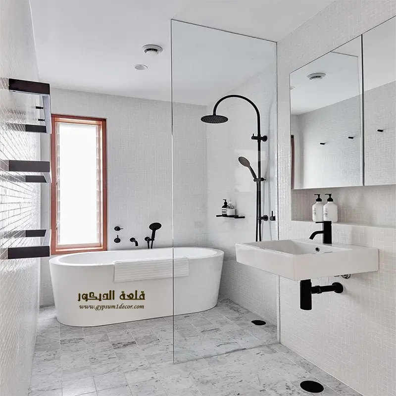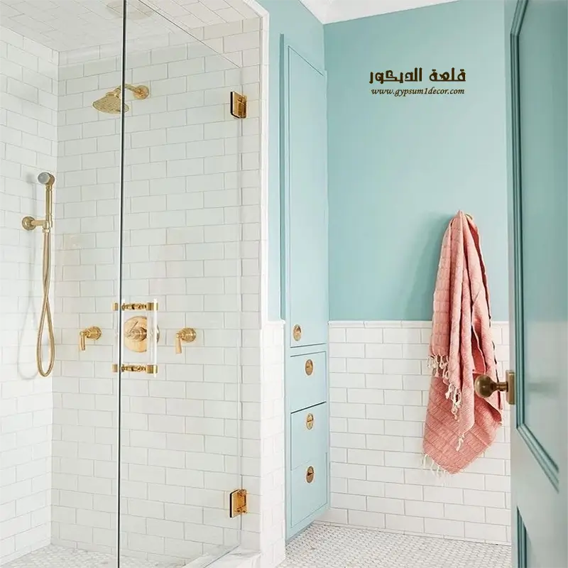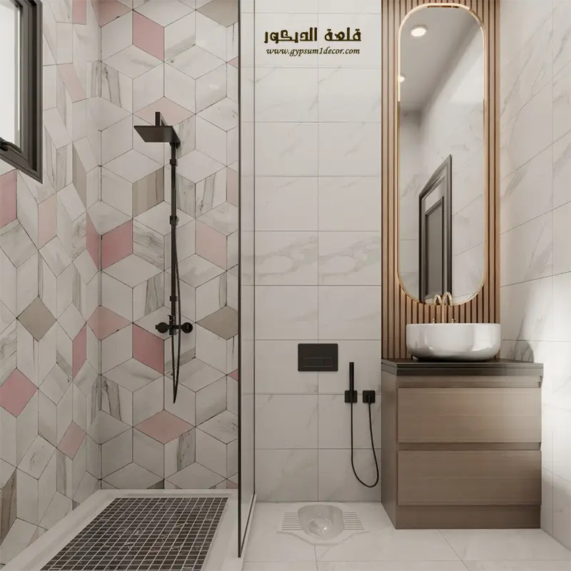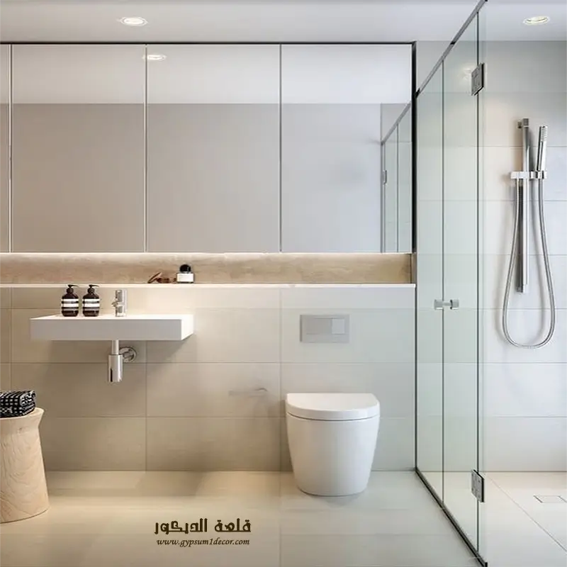 ويمكن استبدال حوض الاستحمام أو البانيو استغلال المساحات الضيقة في الحمام، مع أحدث صور تصميم حمامات صغيره بسبب ضيق المساحة، وكيفية عمل تصميم وتنسيق لديكورات الحمامات في الشقق الصغيرة بطريقة عملية ومنسقة.