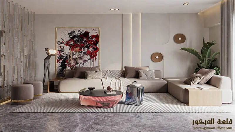 اختيار ديكورات بنسب متجانسة: استخدم الديكور الفاخر والراقي لتزيد من جمالية المنزل، ويمكنك استخدام الزهور واللوحات الفنية والسجاد والوسائد الفاخرة لتعزيز جمالية المنزل.