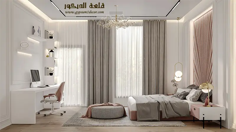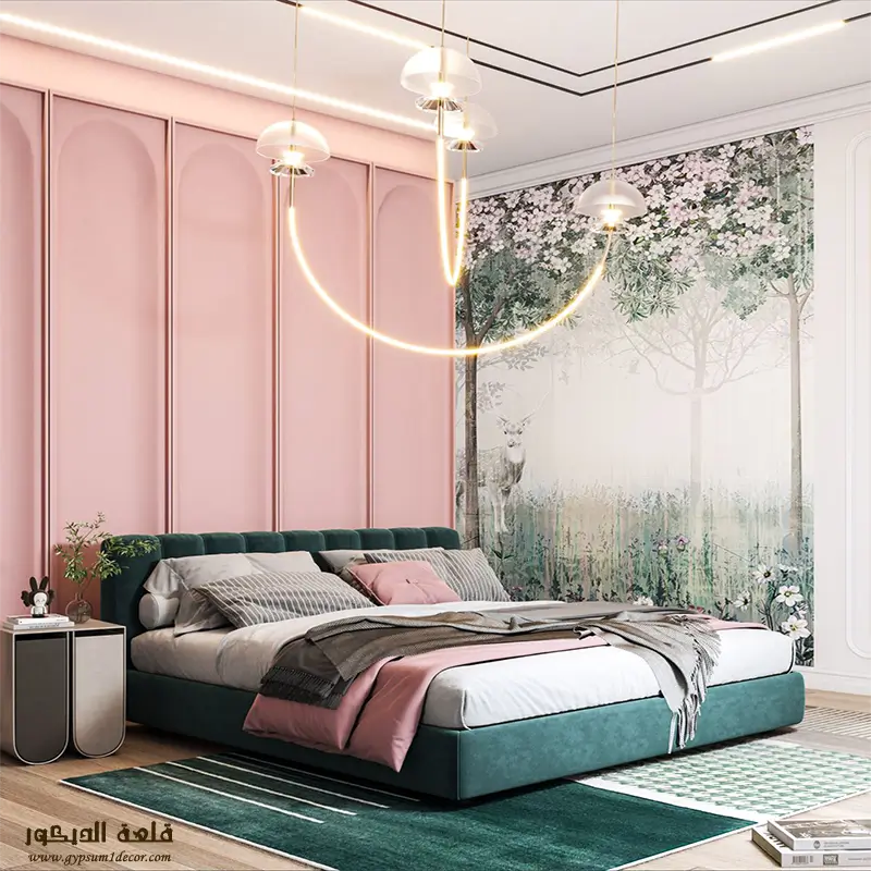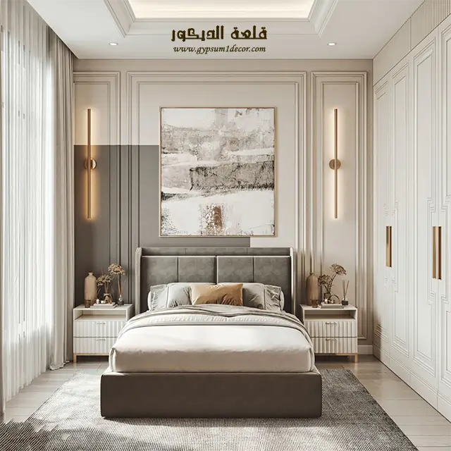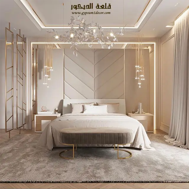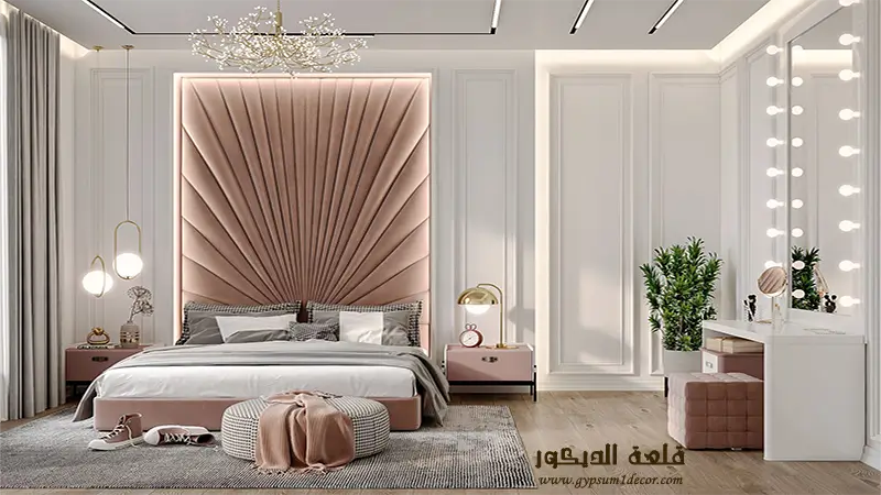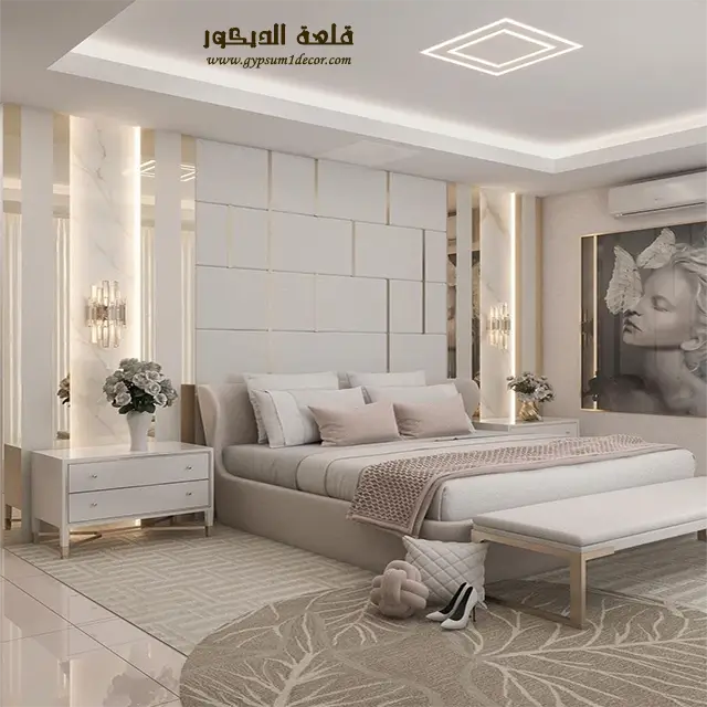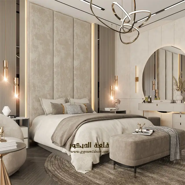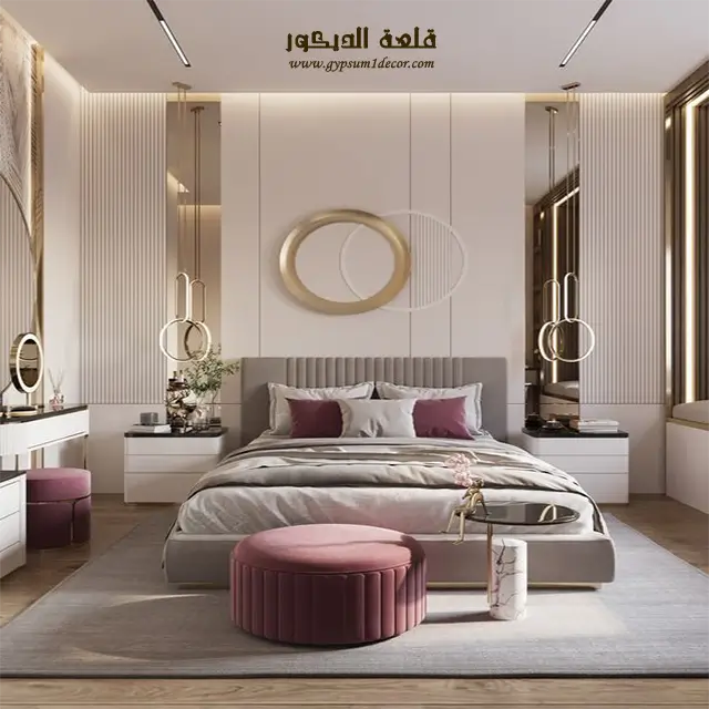 الإضاءة المناسبة : استخدم الإضاءة المخفية وأضواء LED لإضفاء جو هادئ ورومانسي في الغرفة. يمكنك أيضًا استخدام الإضاءة المركزة لتسليط الضوء على نقاط محددة في الغرفة.