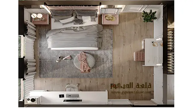 تنسيق المساحة: قم بترتيب الأثاث بشكل مناسب لتحقيق تدفق مريح في الغرفة. قم بوضع السرير في المركز وضع الأثاث الأخر حوله، واترك مساحة كافية للتنقل والحركة.