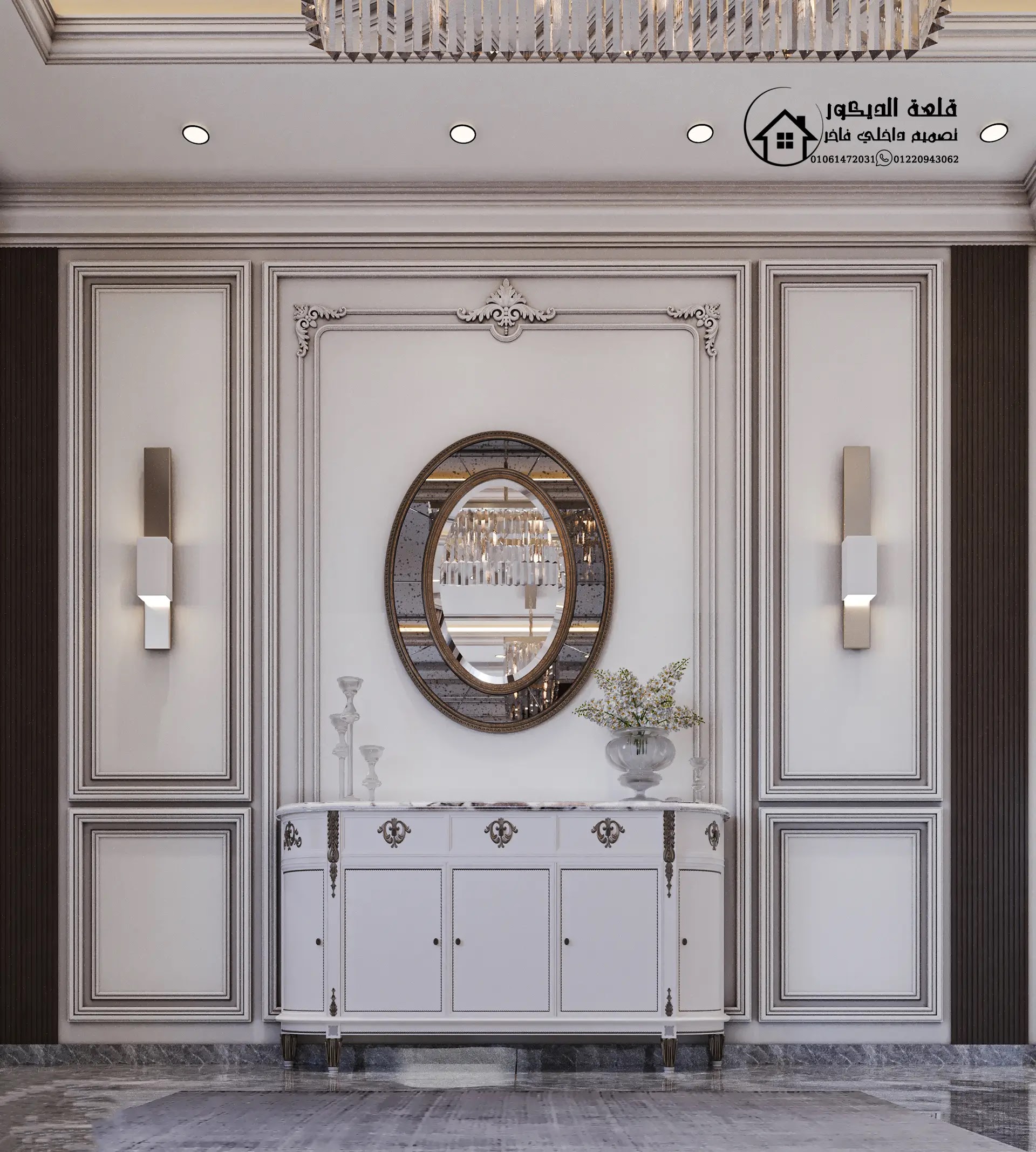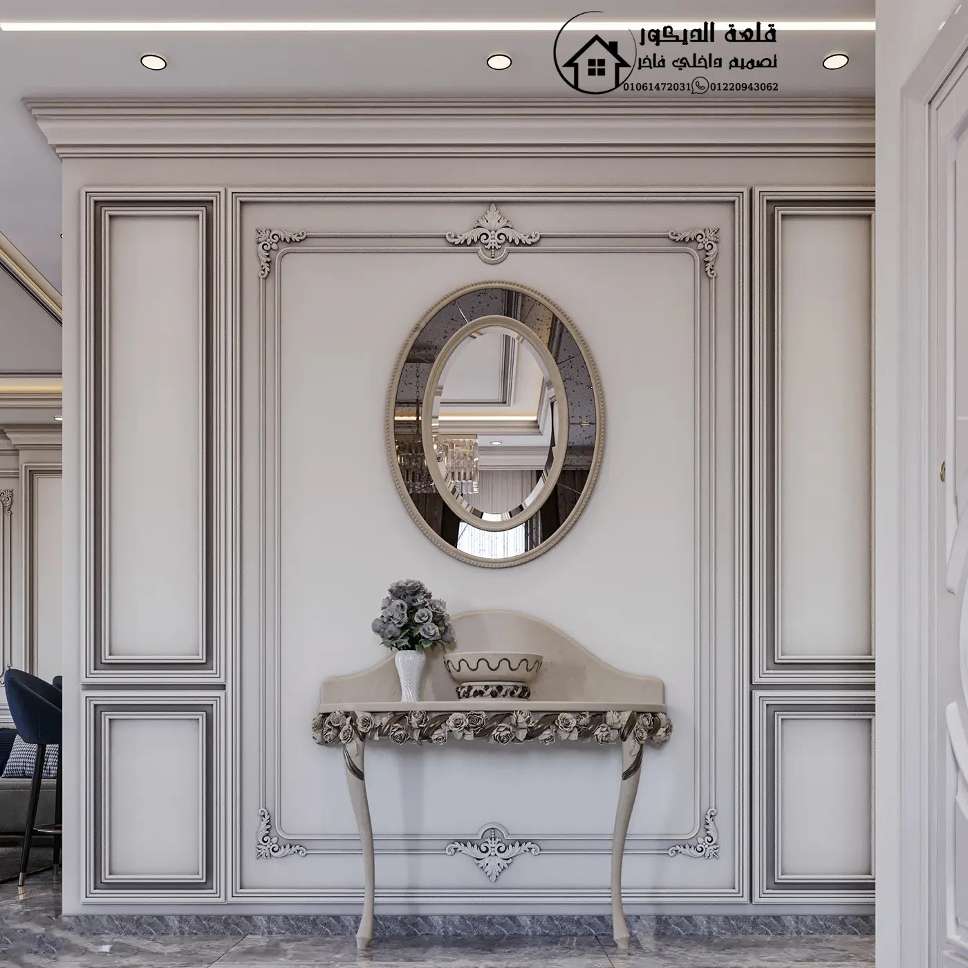 - يمكنك استخدام المرايا الكبيرة الكلاسيكية والستائر الثقيلة والتماثيل واللوحات الفنية لإضفاء لمسات كلاسيكية على الديكور العام.