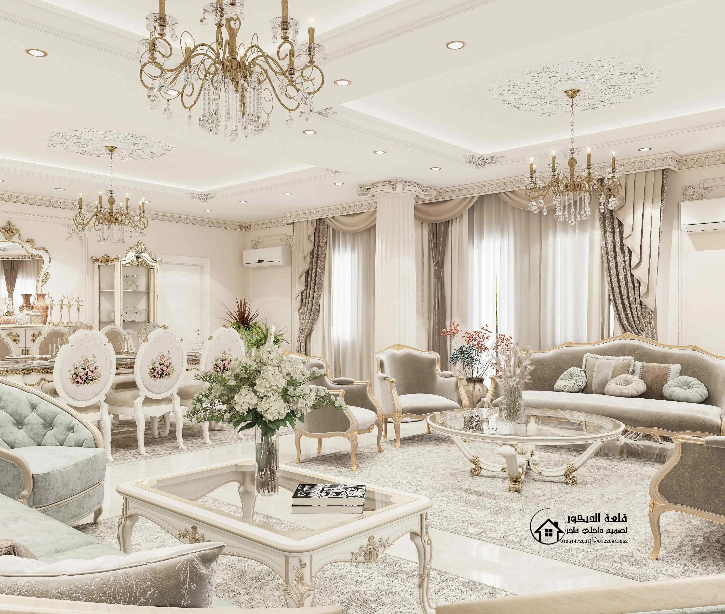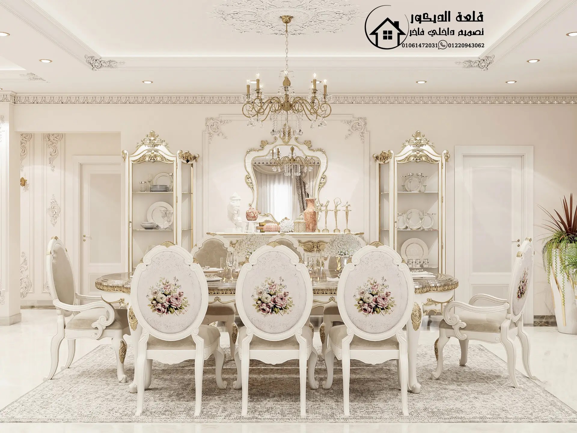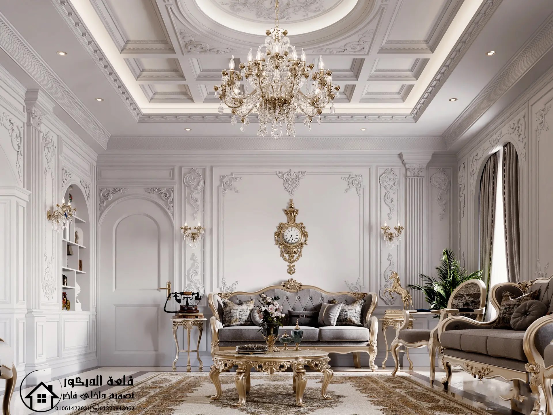 الديكور الفرنسي الكلاسيكي من الديكورات التي تتميز بتصميم داخلى رائع، يتم استخدام الرخام والباركيه في الأرضيات وتأتي بخطوط ذهبية.