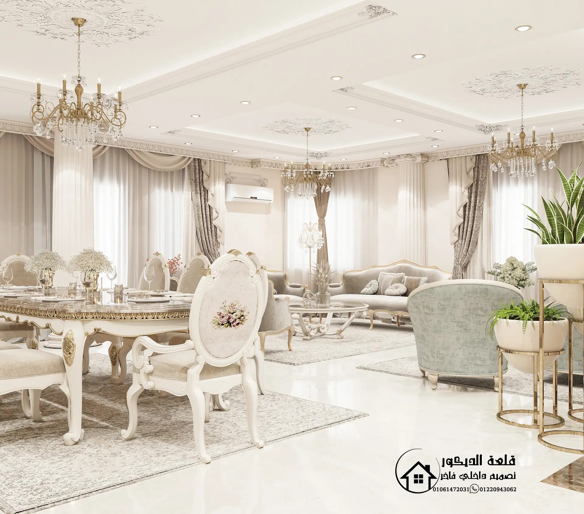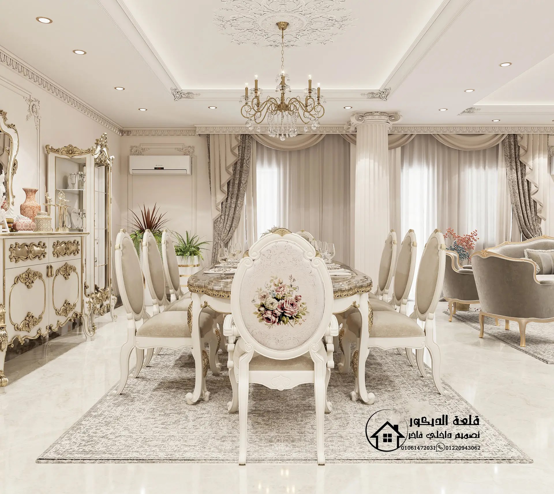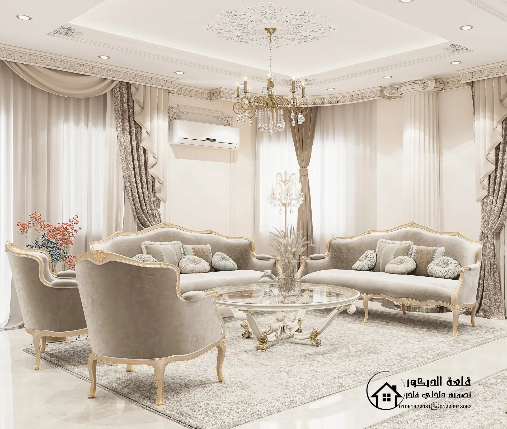 الديكور الفرنسي الكلاسيكي من الديكورات التي تتميز بتصميم داخلى رائع، يتم استخدام الرخام والباركيه في الأرضيات وتأتي بخطوط ذهبية.