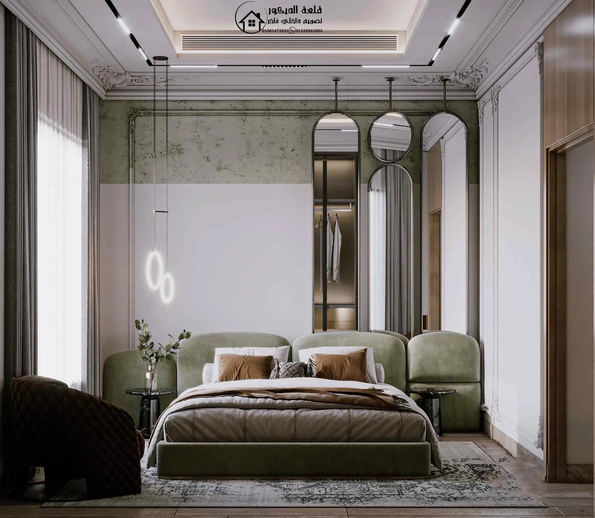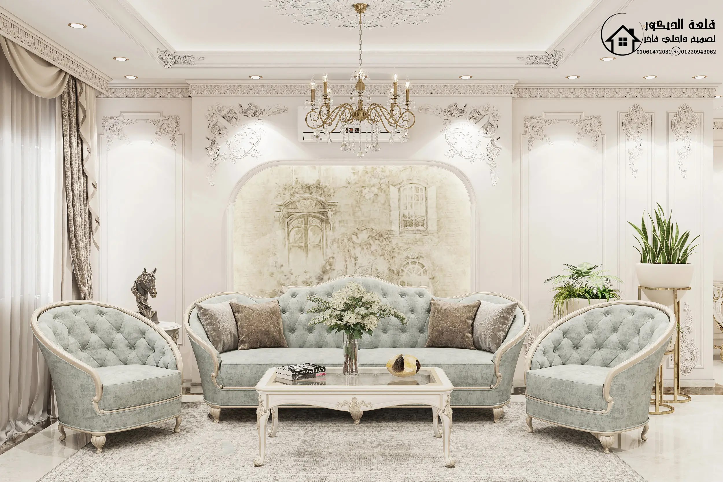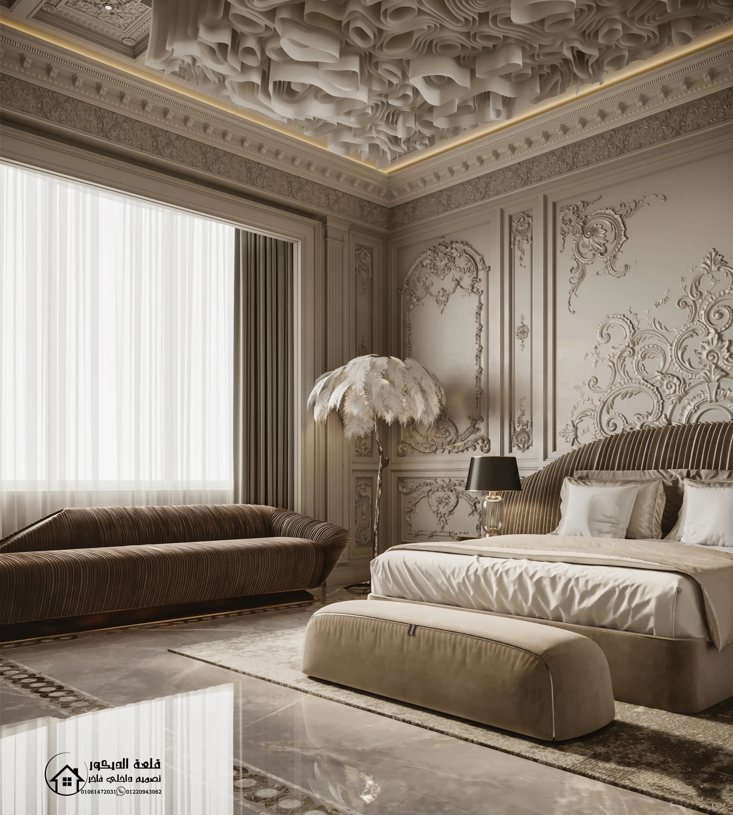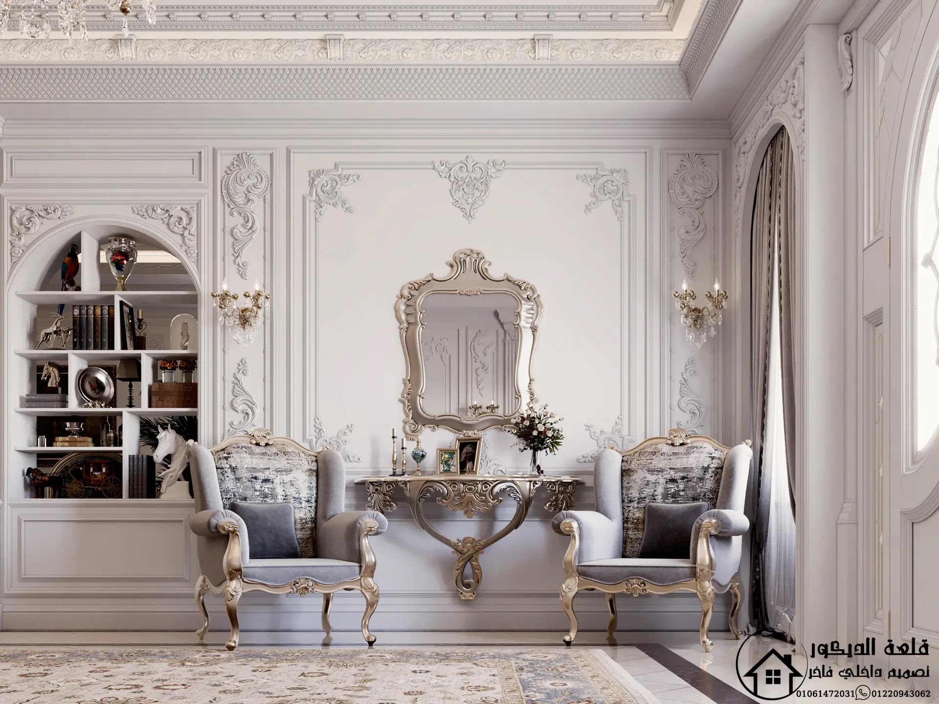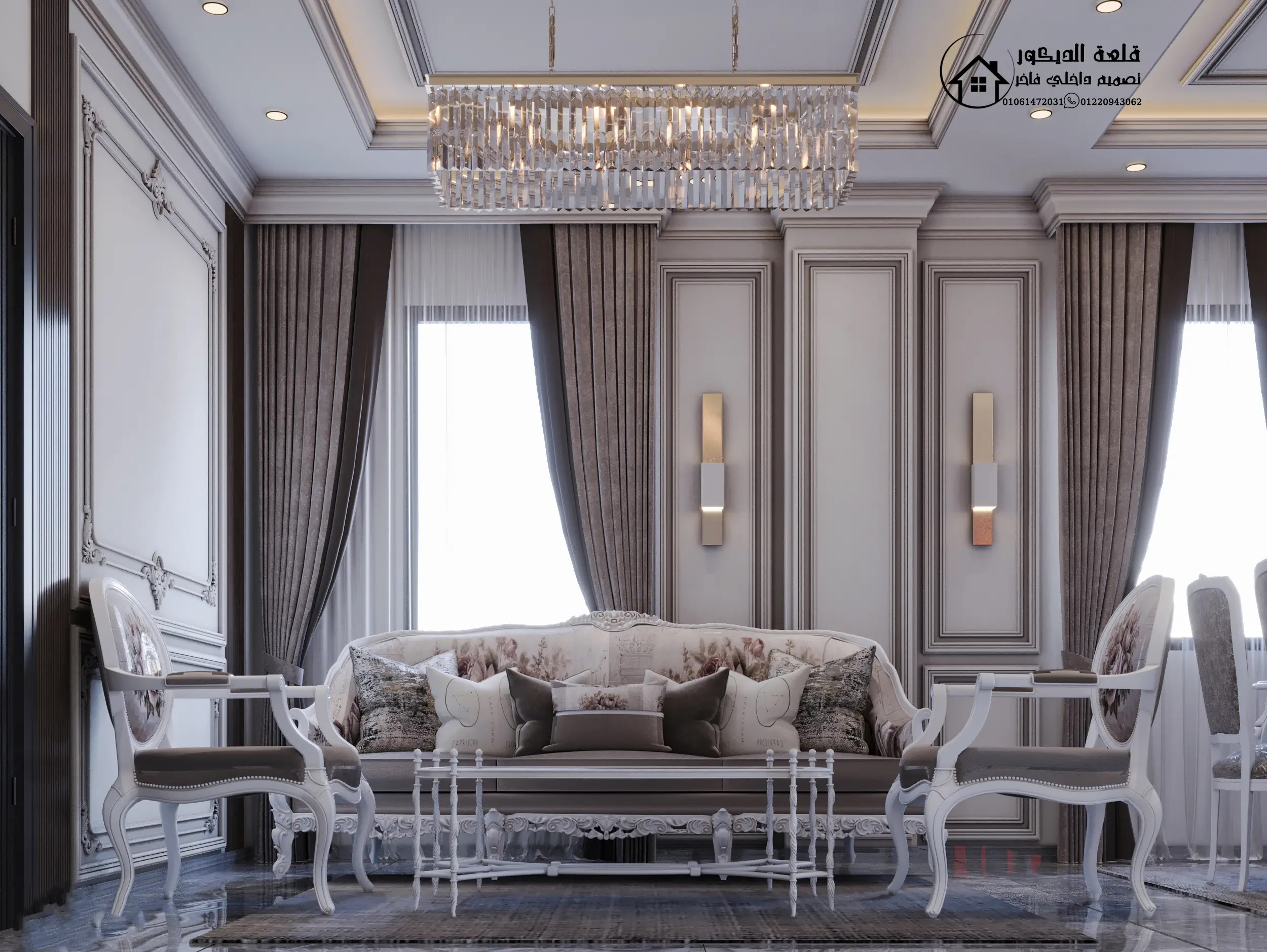 - إذا رغب العميل في مساعدته بالفرش أيضًا يتم اختيار قطع أثاث كلاسيكية مع تفاصيل ناعمة وأنماط مزخرفة.
