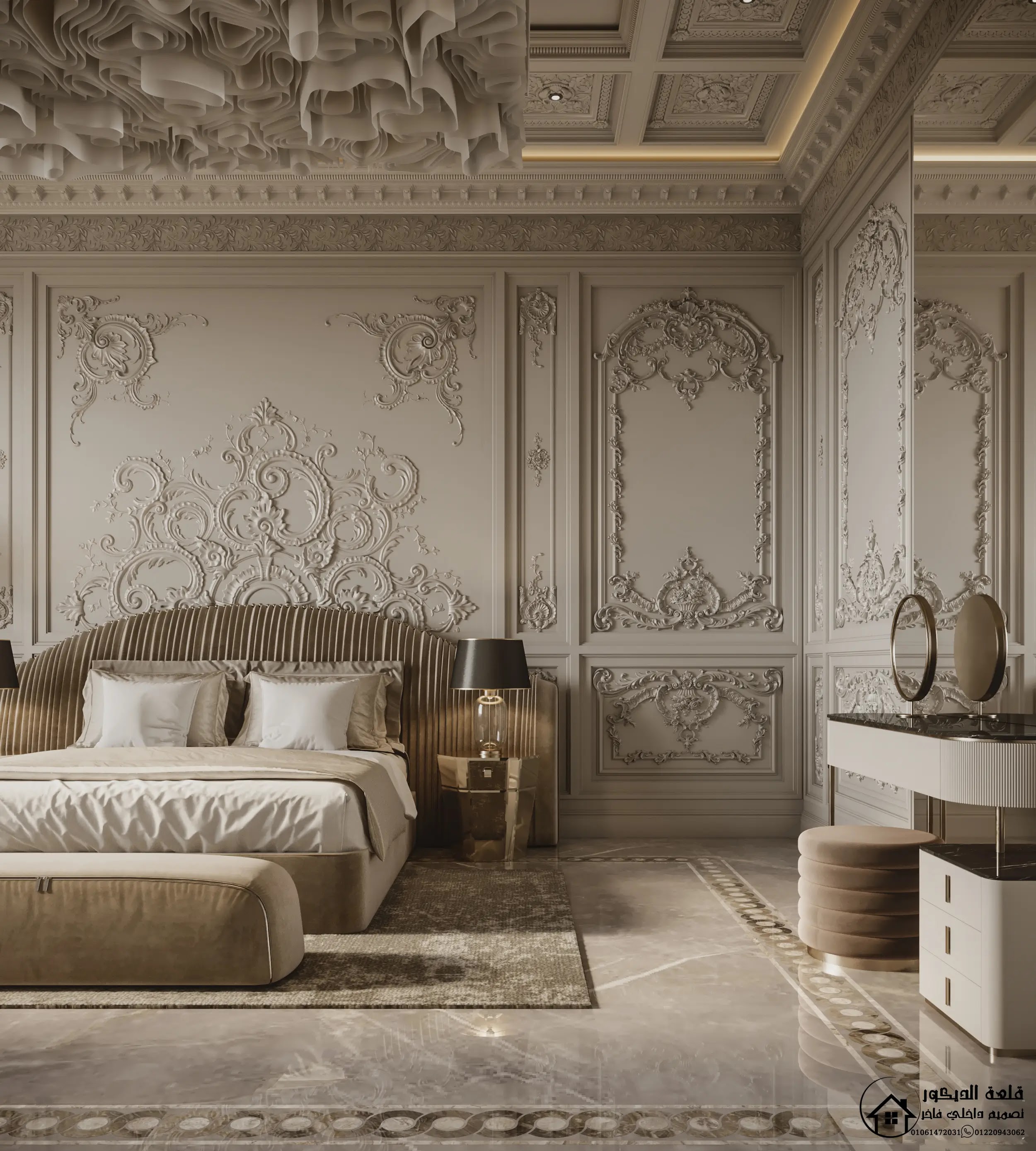 - يُمكن اللجوء إلى الأسقف المزخرفة بالطلاء الأبيض أو الذهبي لتضفي مظهرًا فاخرًا وكلاسيكيًا.